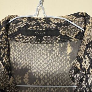 Elegant Gucci shirt with a striking pattern. Features a classic collar and button-up front. Ideal for a sophisticated style. Gucci by Tom Ford Spring 2000 black and white python print shirt.