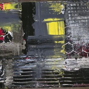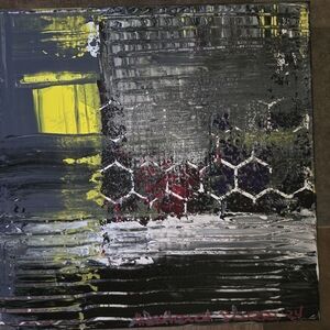 Textures with Pops of Color, this unique Smear Painting has lovely shades of Silver, Grey, Gray, Yellow, Red, Purple, and Black. Hand Painted with Acrylic Paints and a thick Mixed Medium Paste. With Little Octogans Peaking through to say hello from the Warehouse feel of gears grinding out the day. This painting reminds me of a dirty day at a warehouse with the sun peaking through the windows. This One of A Kind Hand Crafted Painting would look lovely in any room of your home. Bringing wonderful shades and pops of color to your walls. Makes a unique gift to give for any special occasion or just because!