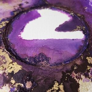 This wackadoo Abstract Hand Painted Painting was created with using Alcohol Inks and My Secret Mixed Medium Brew. As You can see there is tons of layered texture giving it a 3d effect, which looks pretty cool. Definitely something different to add to your Art Collection. With lovely rich colors of Purple, Plum, and Gold it will give such a divine look on your walls, in any room of your house. She is definitely a One of A Kind OOAK Piece of Artwork that you can feel proud to own.