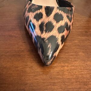 Stylish ALDO heels with bold animal print. Features a sleek black ankle strap. Perfect for a standout look.