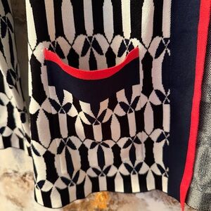 Boden Navy and Red Jacquard design Cardigan with tags in size medium