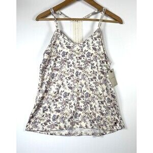 Lucky Brand Tank Top Womens Small Cream Floral Lace Racerback Boho Casual