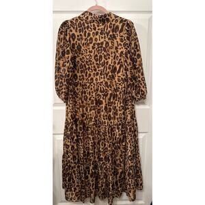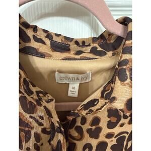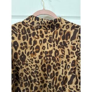 Crown & Ivy Women's 3/4 Sleeve Lurex Shine Metallic Leopard Shirtdress, M