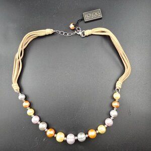 This New with Tags Honora Collection necklace features multi-colored cultured pearls strung on tan suede cords with clasp. A sophisticated accessory for elegant styling.