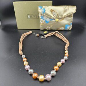NWT Honora Multi-Color Cultured Pearl Necklace Tan Cord Adjustable Box & Bag