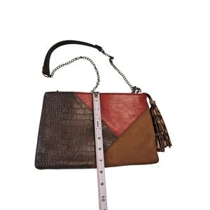 Chicos Patchwork Faux Croc Leather Suede Crossbody Clutch Purse Bag Chain Strap