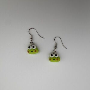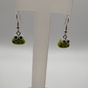 Adorable frog-shaped earrings in a vibrant green color. Perfect for adding a playful touch to any outfit.