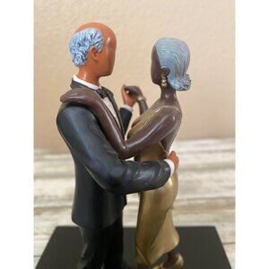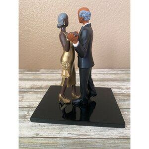 This figurine from Annie Lee’s iconic Sass ’n Class line features a sculpted African-American couple sharing a romantic dance. The man is dressed in a formal dark suit while the woman wears a gold dress and heels.