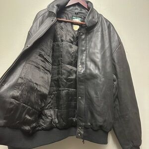 Classic leather bomber by Roots. Timeless style with a sleek finish. Perfect for any occasion.