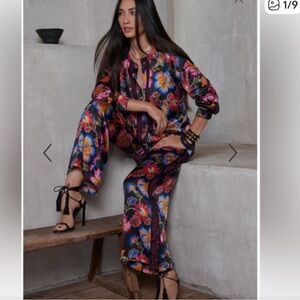 Johnny Was Vibrant Floral Wide Leg Pants