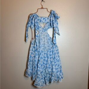 Tularosa Olynne Mini Dress in Blue Ivory Toile Print