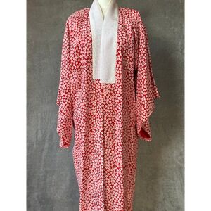 Keywords: Kimono Robe, Japanese Style, Floral Duster, Red White Floral, Vintage Loungewear, Geisha Core, Traditional Japanese, Ditsy Print, Lightweight Jacket, Boho Chic, Festival Wear, Asian Aesthetic, Chinoiserie, Boho, cottagecore, vintage kimono, silk robe, festival wear, slow fashion, Japanese vintage, artsy layering piece.