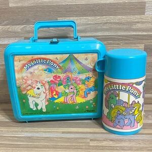 My Little Pony Blue vintage 80s blue Pink Lunchbox Set pastel colors