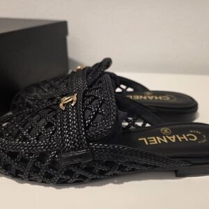 Reliable seller , authentic, purchased from Chanel boutique, brand new, box and dust bags included size 38 , brand new never worn. perfect spring, summer shoe!!