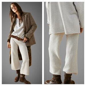 FREE PEOPLE Hailee Waffle Knit Wide Leg Relaxed Pull On Pants in Light Grey sz S