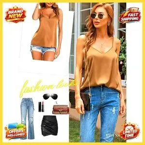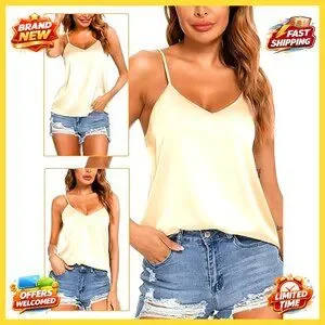 Satin V-Neck Camisole Adjustable Spaghetti Straps Loose Fit Elegant Chic