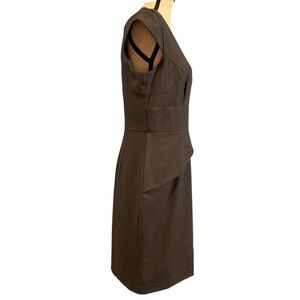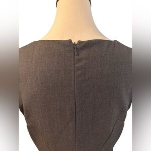 Chic charcoal gray midi dress by Calvin Klein. Features cap sleeves and a stylish waist detail. Ideal for versatile wear.