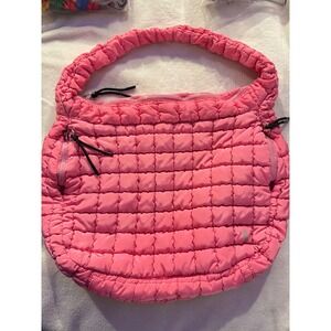 Free People Movement Quilted Carryall Bag Hot Pink Puffer Hobo Tote Large FP New