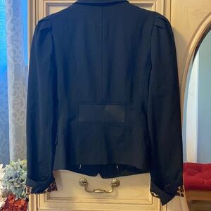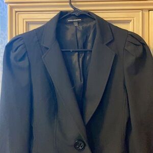 Express Design Studio Jacket Leopard Puff Sleeve. Suit/work jacket, black, size 2, functional buttons, leopard print piping and inside sleeve. Great condition