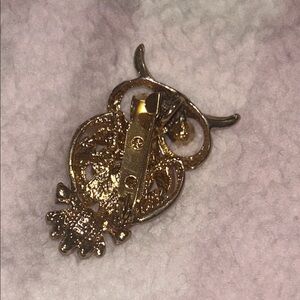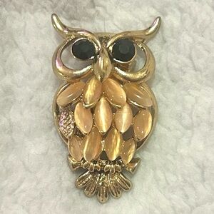 Cute gold owl brooch with black eye accents. Perfect for adding a whimsical touch to any outfit. ๐ฆ