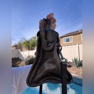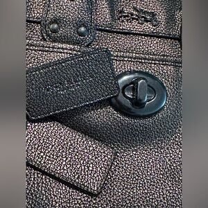 Features: Turnlock front pocket, turn locks on the zipper ends, zip-top closure, and adjustable shoulder strap