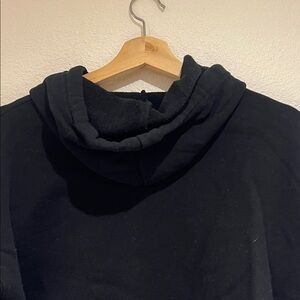 Sleek black hoodie with a cropped fit. Ideal for casual outings.