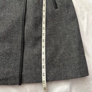 Gray double breasted pea coat with black removable faux fur faux leather trims