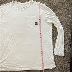 Saxx long sleeve tee in white. Features a chest pocket. Soft modal fabric for sleep.
