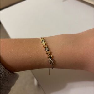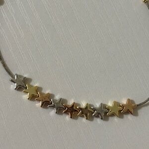 Adjustable string bracelet with Silver, gold, and rose gold stars