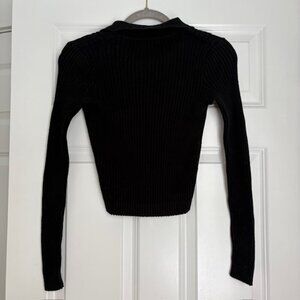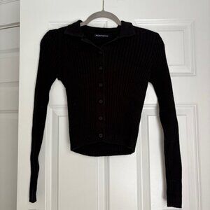 ribbed button-down black sweater with cute collar by Brandy Melville