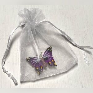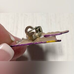 KORO Purple/Yellow Metal Hand Painted Butterfly Brooch Vintage Classic Accessory