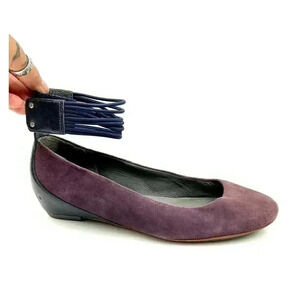 Tsubo Gylda Women's Ankle Strap Wedges Purple Navy Suede Shoes Sz 7 Flats