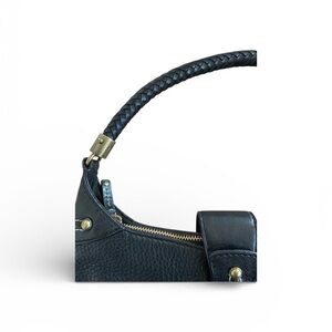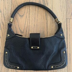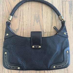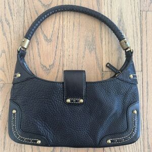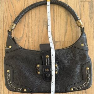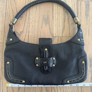 Michael Kors Black Leather Shoulder Purse with Braided Strap and Gold Detailing
