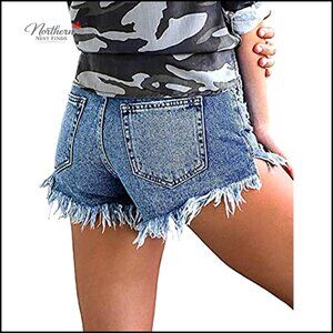 Mid Waist Denim Shorts Ripped Distressed Raw Hem Stretchy Casual Summer
