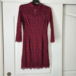 Noctflow Red Lace Long Sleeve Dress High Neck Size Large Holiday Sheath Dress