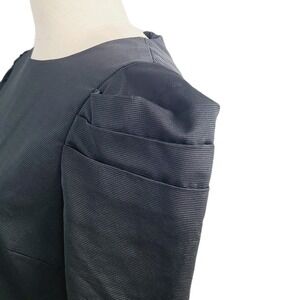 Reiss Puff-Sleeve Black Mini Dress Pleated Hem Minimalist Party Womens 8