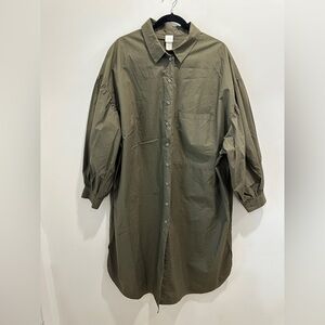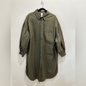 H&M Olive Green Shirt Dress, puff sleeve, size XL