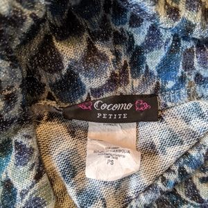 Cocomo cowl neck sweater, unique print, cross between snakeskin and bird feathers AND it sparkles, or has metallic thread through it