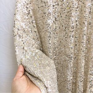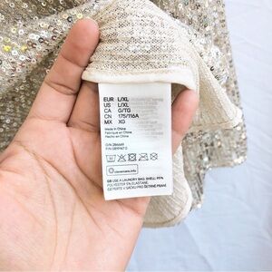 H&M | NWOT L/XL SEQUINED TOP WITH HIGH MOCK COLLAR LONG SLEEVED SHEER BLOUSE