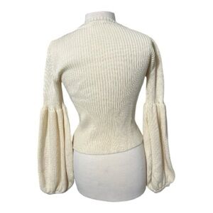 Beautiful wool blend, Stylish cream ribbed knit sweater featuring elegant balloon sleeves. Perfect for a chic and cozy look.