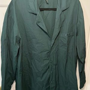 Skims Sleep Dark Green Cotton Long Sleeve Button-Up Shirt 2x