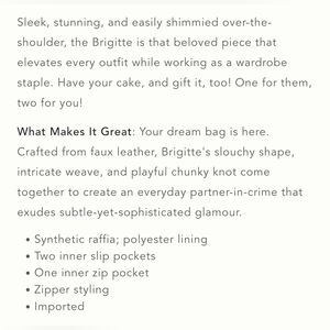 NWT, still in plastic! Stylish satchel with a woven pattern. Features a unique knotted handle. Perfect for casual outings.