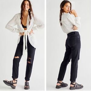 Free People We The Free Bren Boyfriend Black Distressed Jean