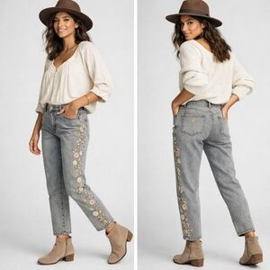 Driftwood Royce Embroidered Jeans Sz 27 Grey Floral Straight Boho Western Cottag