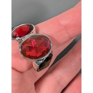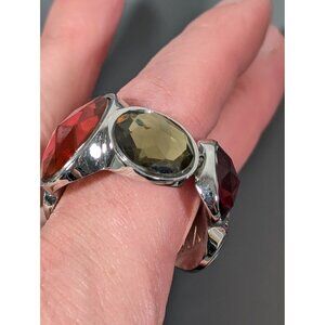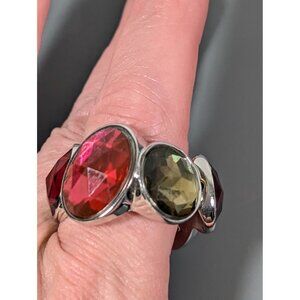 Vera Wang Cocktail Ring Red Pink Green Cabochon Wide Stretch Size 11
