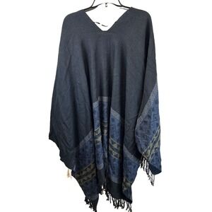 Atmosphere Blue Geometric Aztec Poncho OS Bohemian Fringe Wrap Shawl
