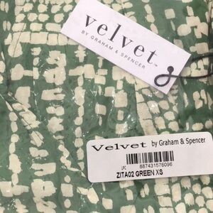 🔥NWT ANTHROPOLOGY VELVET by GRAHM & SPENCER “ZITA” BLOUSE in GREEN/CREAM