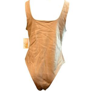Womens Large Tank Bodysuit Tan Snaps Sleeveless Square Neck Stretch New Day NWT