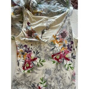 This NWT Analili dress is a stunning white floral print silk overlay shift dress, perfect for a wedding or as a wedding guest dress. With a V-neckline and sleeveless design, this dress features a pullover closure and is made of a blend of spandex, polyester, and lace nylon. The kimono sleeves and short length add a touch of elegance, while the lined accents provide a comfortable fit. Suitable for various occasions including travel, parties, and casual events, this dress is designed for a size XS/S and is sure to make a stylish statement with its beautiful floral pattern and classic shift silhouette.