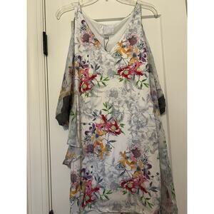 NWT ANALILI Sz XS/S Dress White Floral Print Silk Overlay Shift Wedding Guest